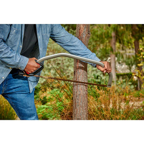 The Corona MAX 24-inch Bow Saw easily cuts through tree branches up to 10 inches in diameter. Its open frame design allows for increased cut capacity with fewer strokes per cut, making it ideal for cutting fallen trees and branches, or for tree trimming and landscaping. This professional-grade bow saw features a co-molded ergonomic handle with an integrated protective knuckle guard, allowing you to make deep cuts safely and comfortably. Plus, its protective magnetic blade cover fully covers the teeth of the blade for safe, compact storage and easy transportation, making it an essential saw for arborists, campers, backpackers and ATV riders.