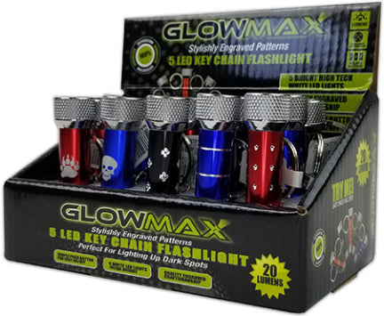 Glow max 5 led engraved keychain, display of 15.